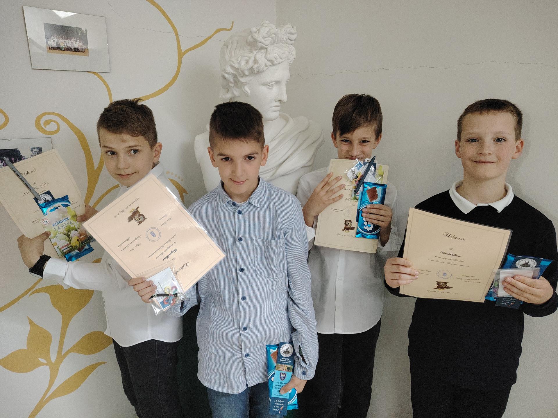 1.Rengeteg versenyre készültünk ősz óta .Ezek nagy része ebben a hónapban volt. Többségében komoly sikereket éltünk át. Mindig nagyon büszkék vagyunk egymásra, elmeséljük az élményeinket és megtapsoljuk a győzteseket . Részt vettünk sikeresen prózamondó versenyen, versmondó versenyen, német versmondó versenyen, tehetségkutatón, zongoraversenyen, rajzversenyeken és sok sportversenyen.