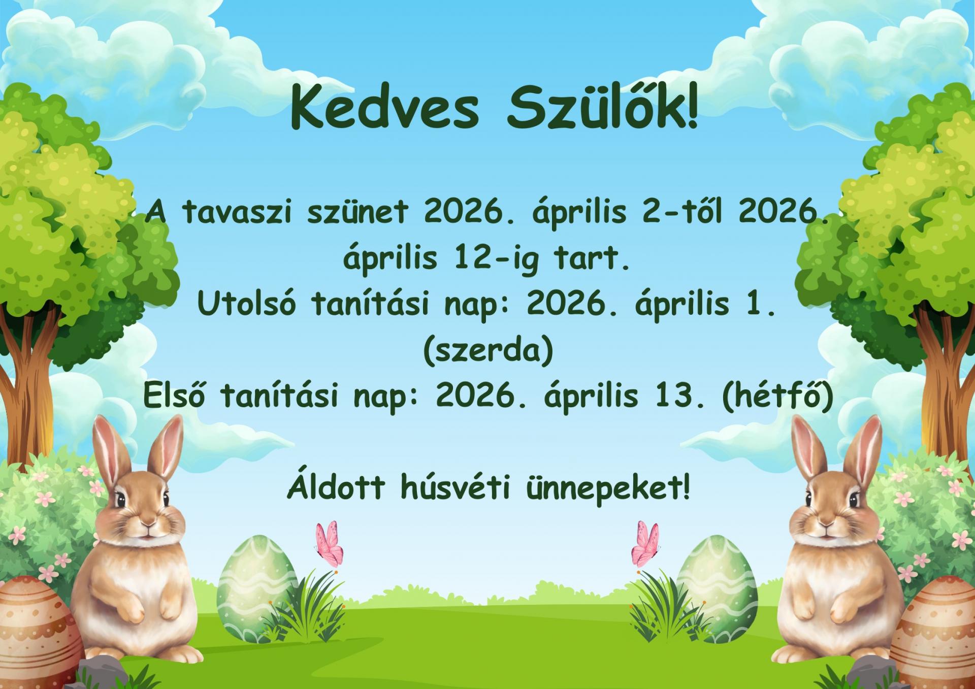 Aktuális Tavaszi szünet_2026 2026. március 30., hétfő @ 09:36 Áldott, nagyon boldog húsvéti ünnepeket kívánunk! Kapcsolódó galéria Tavaszi szünet_2026 Megosztás