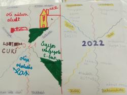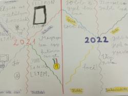 8. Megtanulták az elmetérkép = gondolattérkép fogalmát. S megrajzolták a 2021-22. gondolattérképét különböző szeletekre vágva. Ez a feladat nagyon tetszett nekik, lelkesen töltötték ki a lapot, s minden részét meg is beszéltük, mert nagyon szerették volna folyamatosan elmondani a gondolataikat. Nagyon nagy élmény volt ezt velük átélni, hogy értékelik az előző évet, mi hogyan csapódott le bennük, s milyen reményekkel tekintenek az idei évre. Számomra is nagyon tanulságos volt ez a foglalkozás. Nagyon sokkal hozzájárul egy ilyen alkalom egy gyerek lelkének megismeréséhez.