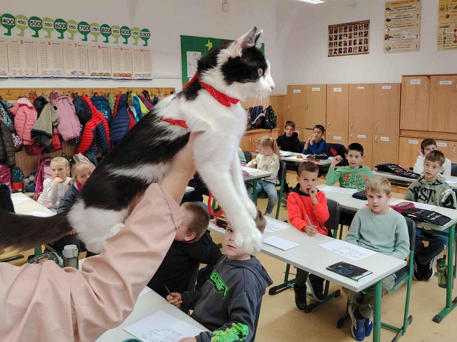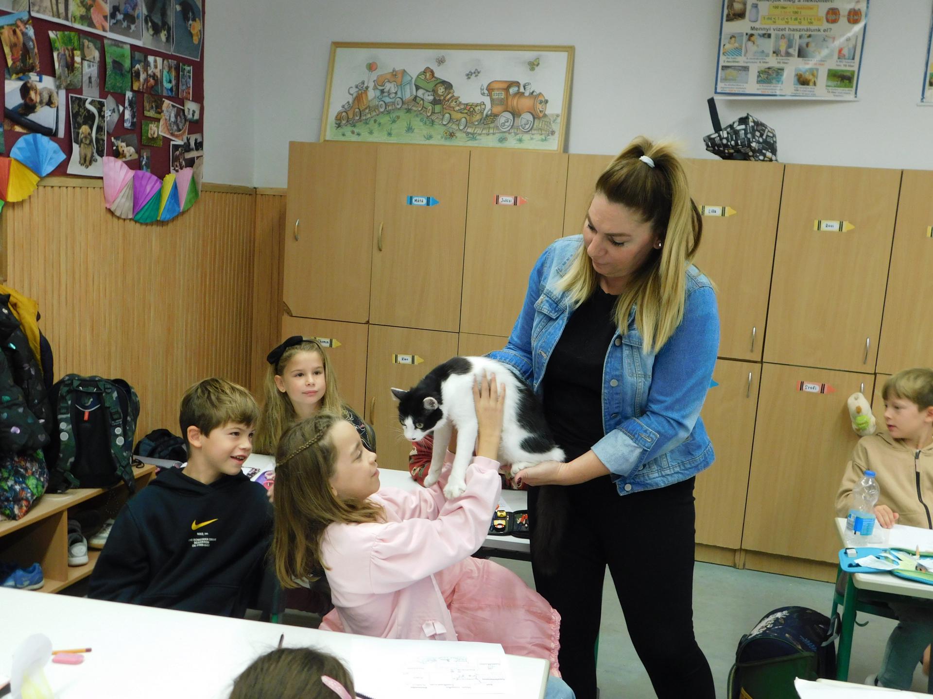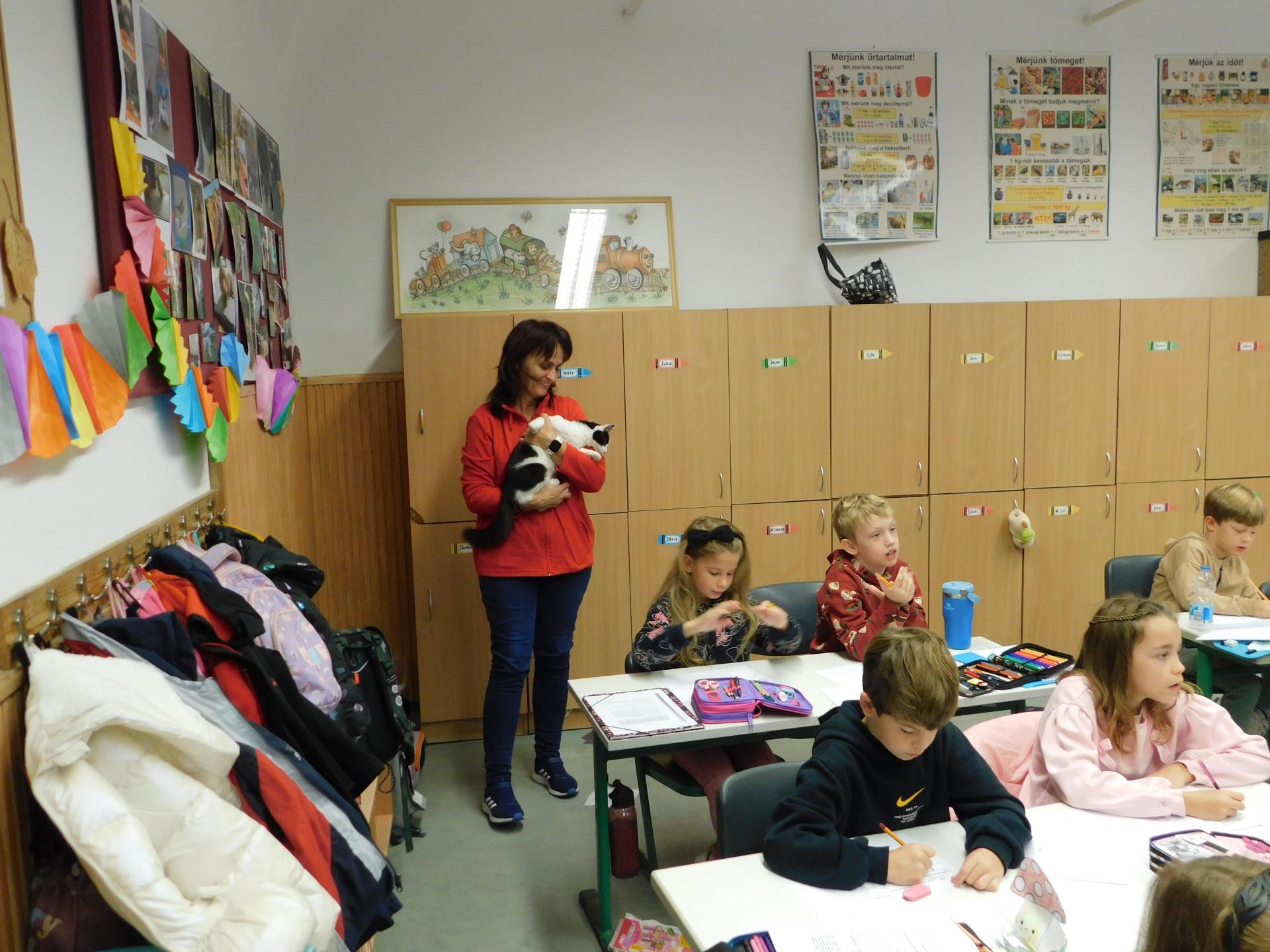 Bodza cica megnézte, hogyan tanulnak a gyerekek az 1.a, 1.b, 2.a, 2.b, 3.a és 3.b osztályokban. Körbesétált, szemügyre vette, milyen a kilátás az ablakból, s közben a gyerekek megfigyelhették tulajdonságait, testfelépítését, mozgását. Gazdija (Czeglédiné Dániel Georgina pedagógiai asszisztens - Gina néni) sok érdekes dolgot mesélt a macskákról, a felelős állattartásról, és cicás feladatokat is hozott, amelyeket így sokkal könnyebb volt megoldani. Bodzának nagyon tetszett az iskola, és megengedte, hogy megsimogassák. A látogatás nagy élmény volt a gyerekeknek, igazán emlékezetessé tette az Állatok Világnapját.