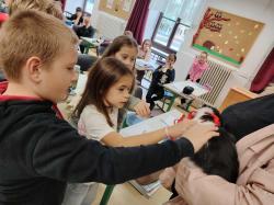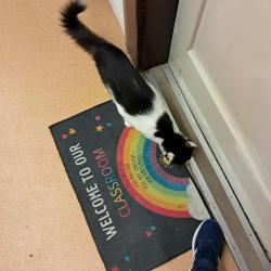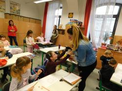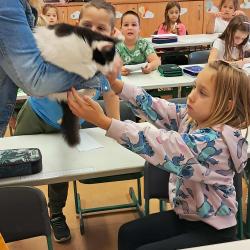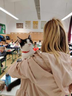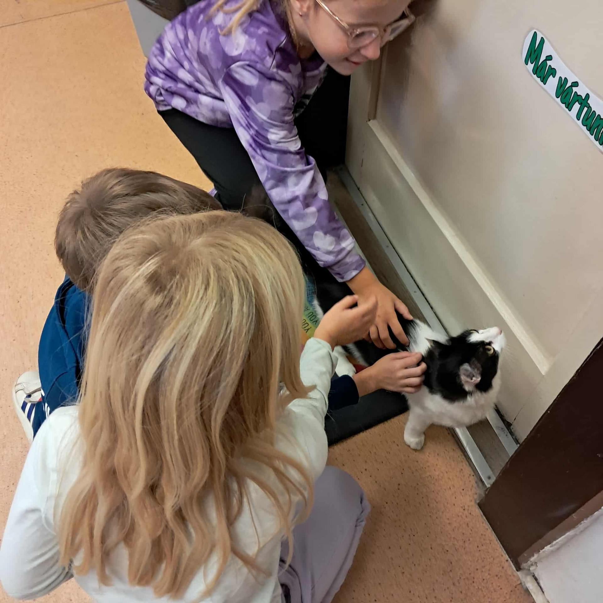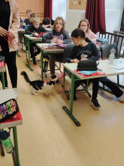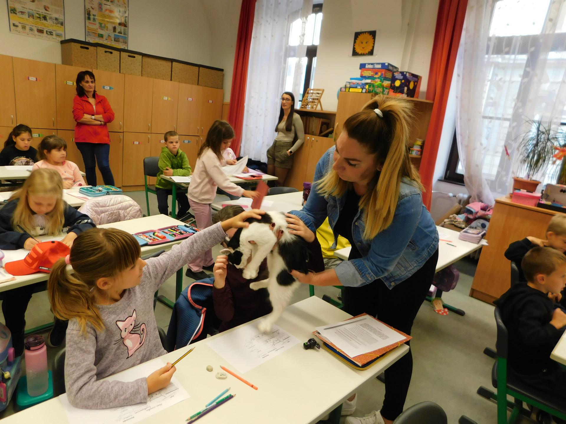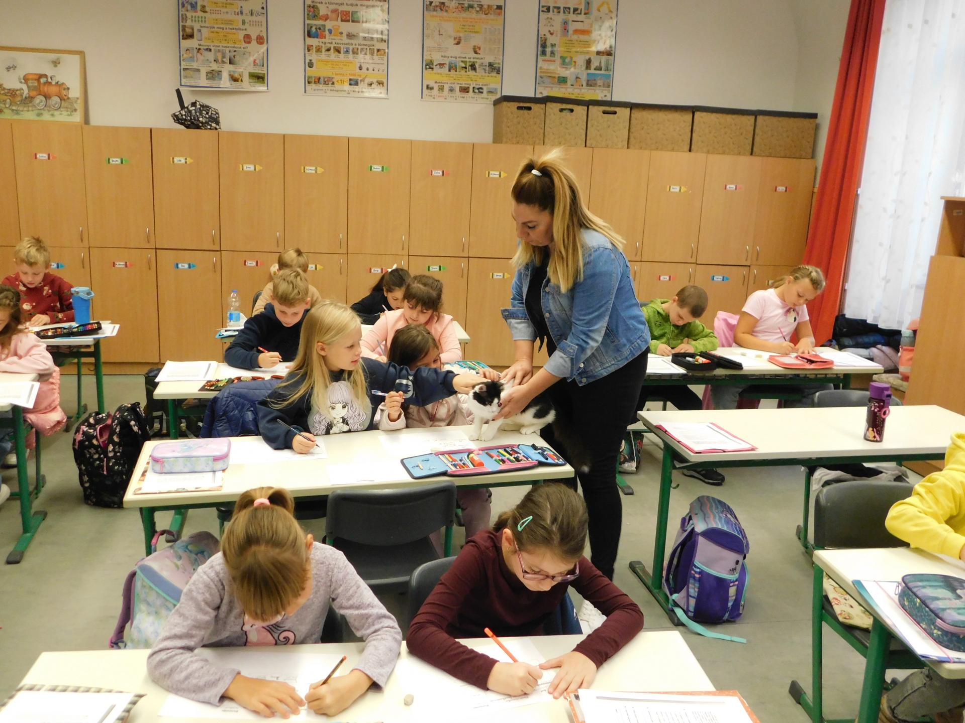 Bodza cica megnézte, hogyan tanulnak a gyerekek az 1.a, 1.b, 2.a, 2.b, 3.a és 3.b osztályokban. Körbesétált, szemügyre vette, milyen a kilátás az ablakból, s közben a gyerekek megfigyelhették tulajdonságait, testfelépítését, mozgását. Gazdija (Czeglédiné Dániel Georgina pedagógiai asszisztens - Gina néni) sok érdekes dolgot mesélt a macskákról, a felelős állattartásról, és cicás feladatokat is hozott, amelyeket így sokkal könnyebb volt megoldani. Bodzának nagyon tetszett az iskola, és megengedte, hogy megsimogassák. A látogatás nagy élmény volt a gyerekeknek, igazán emlékezetessé tette az Állatok Világnapját.