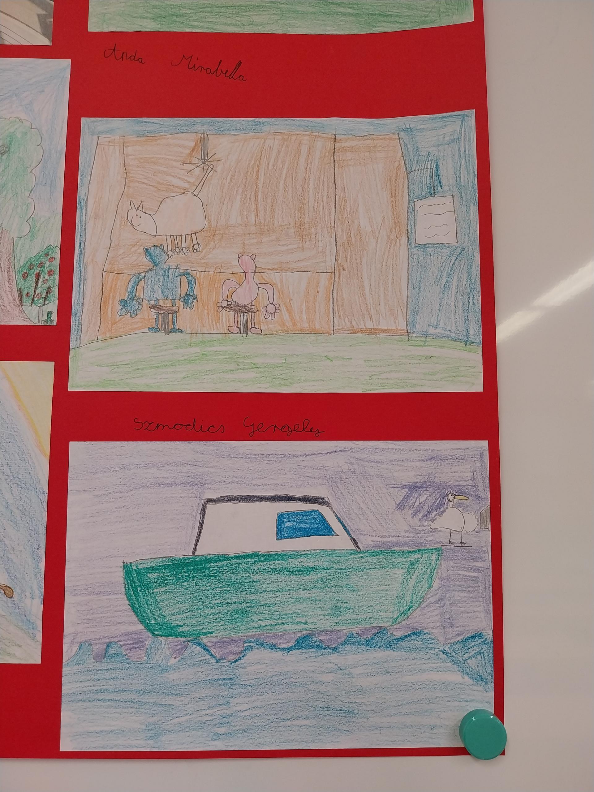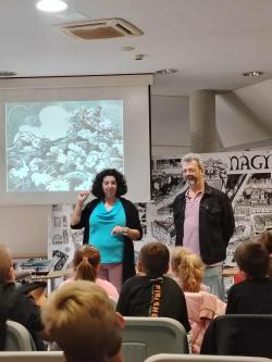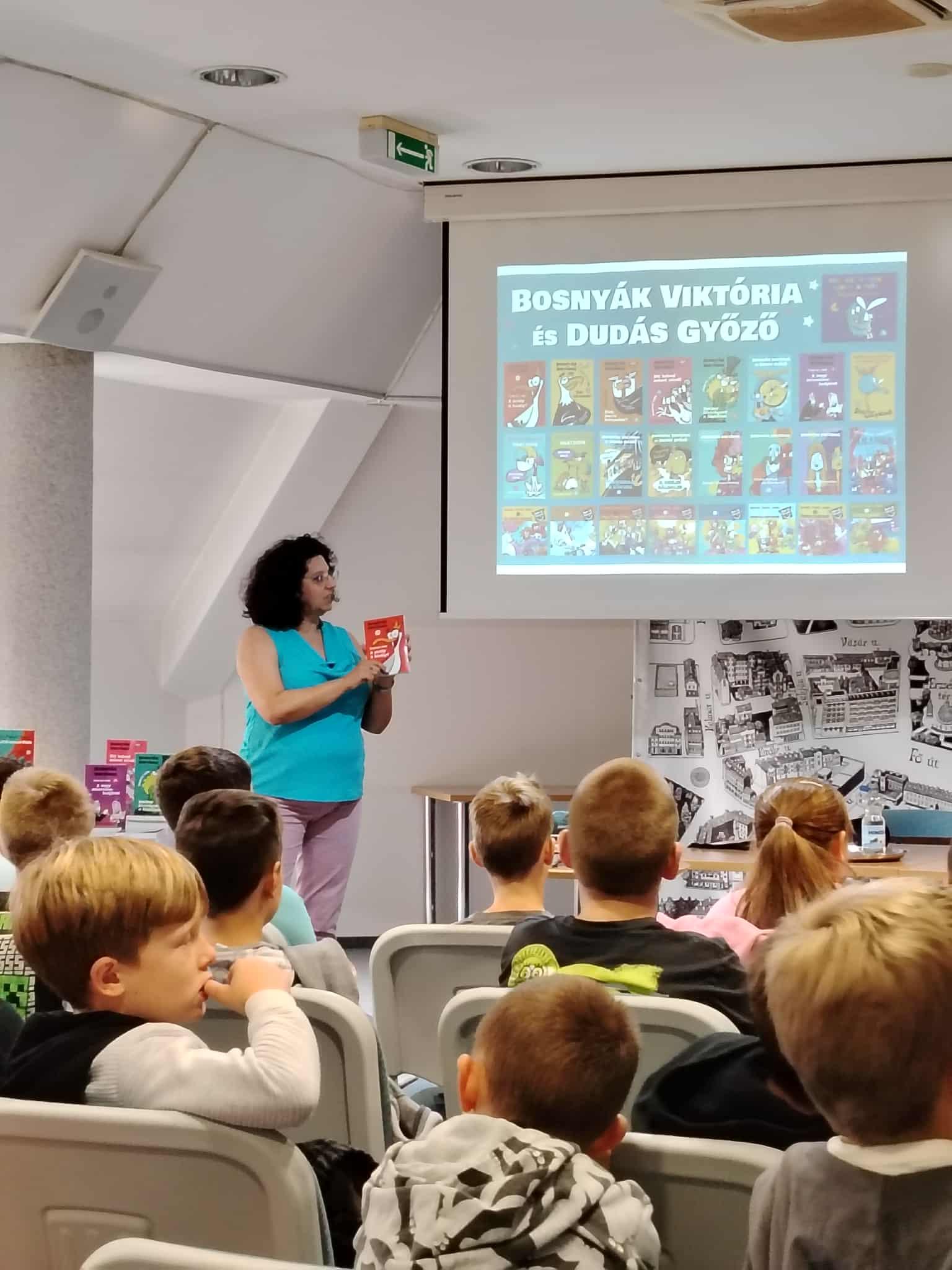 A találkozón megismerkedhettünk Bosnyák Viktória többi könyvével is, amikhez személyes élményeket, emlékeket mesélt. Dudás Győző pedig elbűvölt minden kisgyereket és pedagógust a rögtönzött rajzolásával. A gyerekek az előadás után a saját, dedikált példányukkal térhettek vissza az iskolába. Öröm volt nézni, ahogy egész nap lapozgatják a könyveiket, bele-bele olvasgatnak és nézegetik Győző által készített képeket. Biztos vagyok benne, hogy a könyv olvasása alatt többször maguk előtt fogják látni a mai napot.