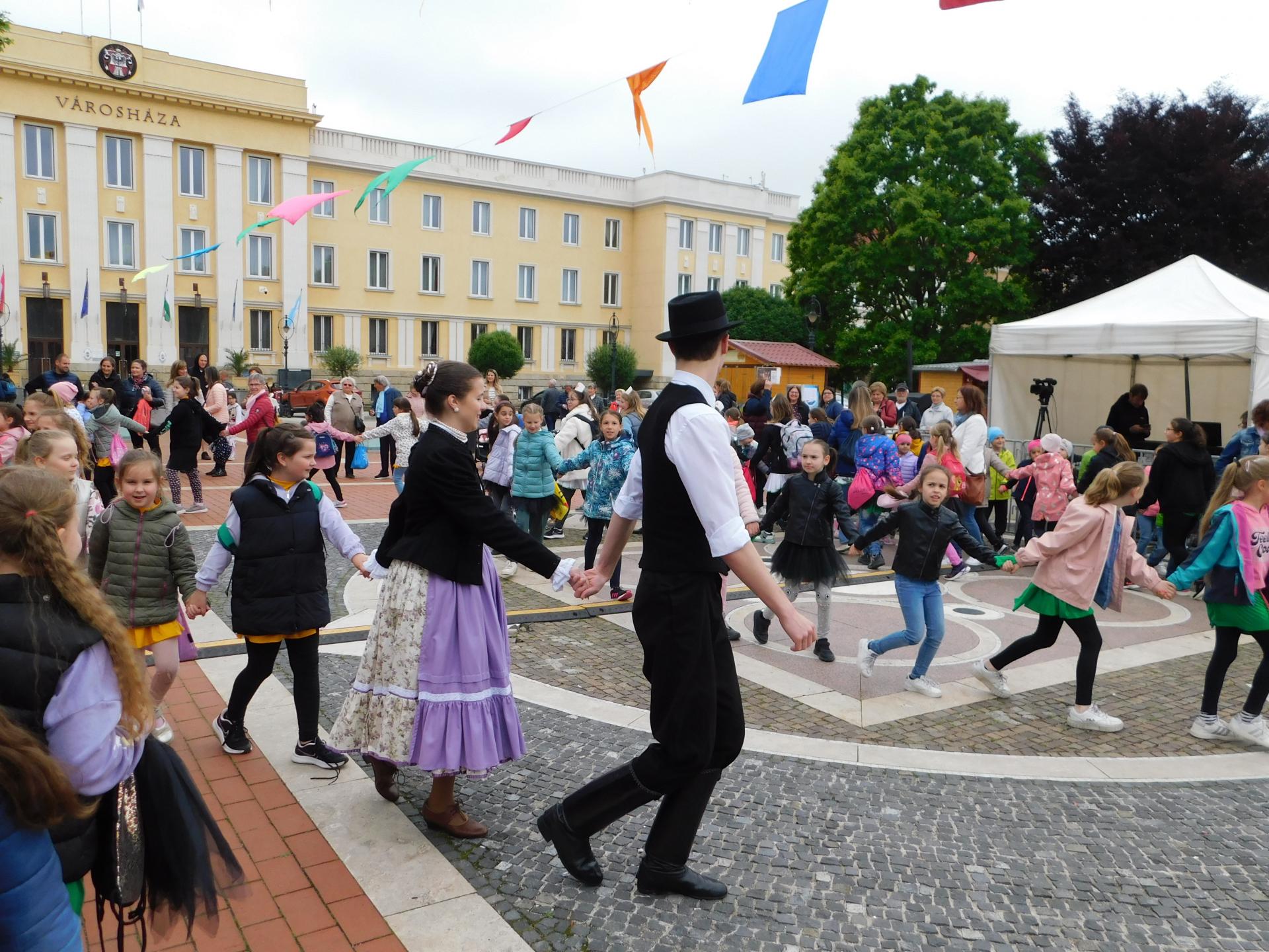 Pénteken az Erzsébet téren a kis szereplők a fellépés előtt még a táncházba is bekapcsolódtak.