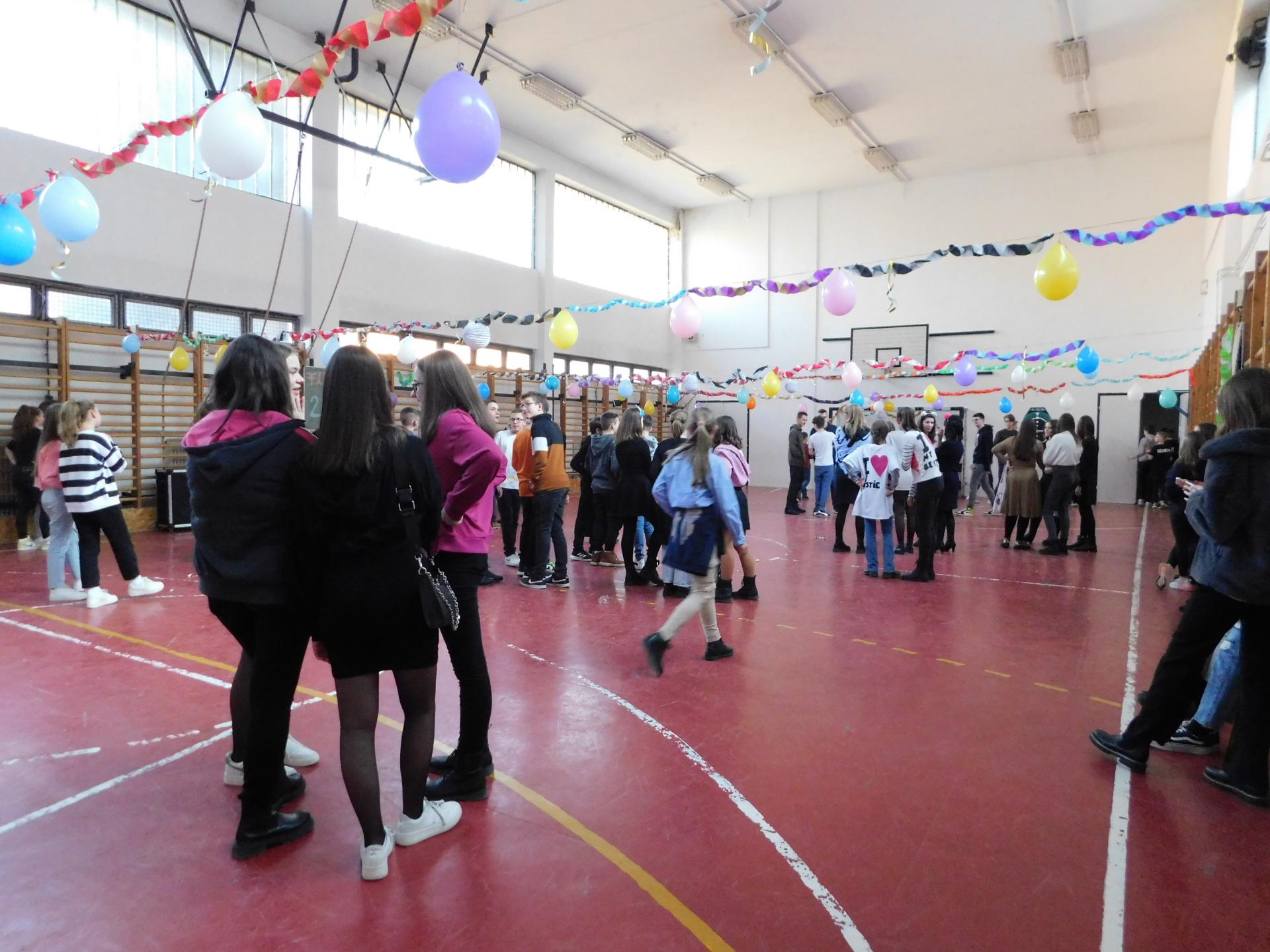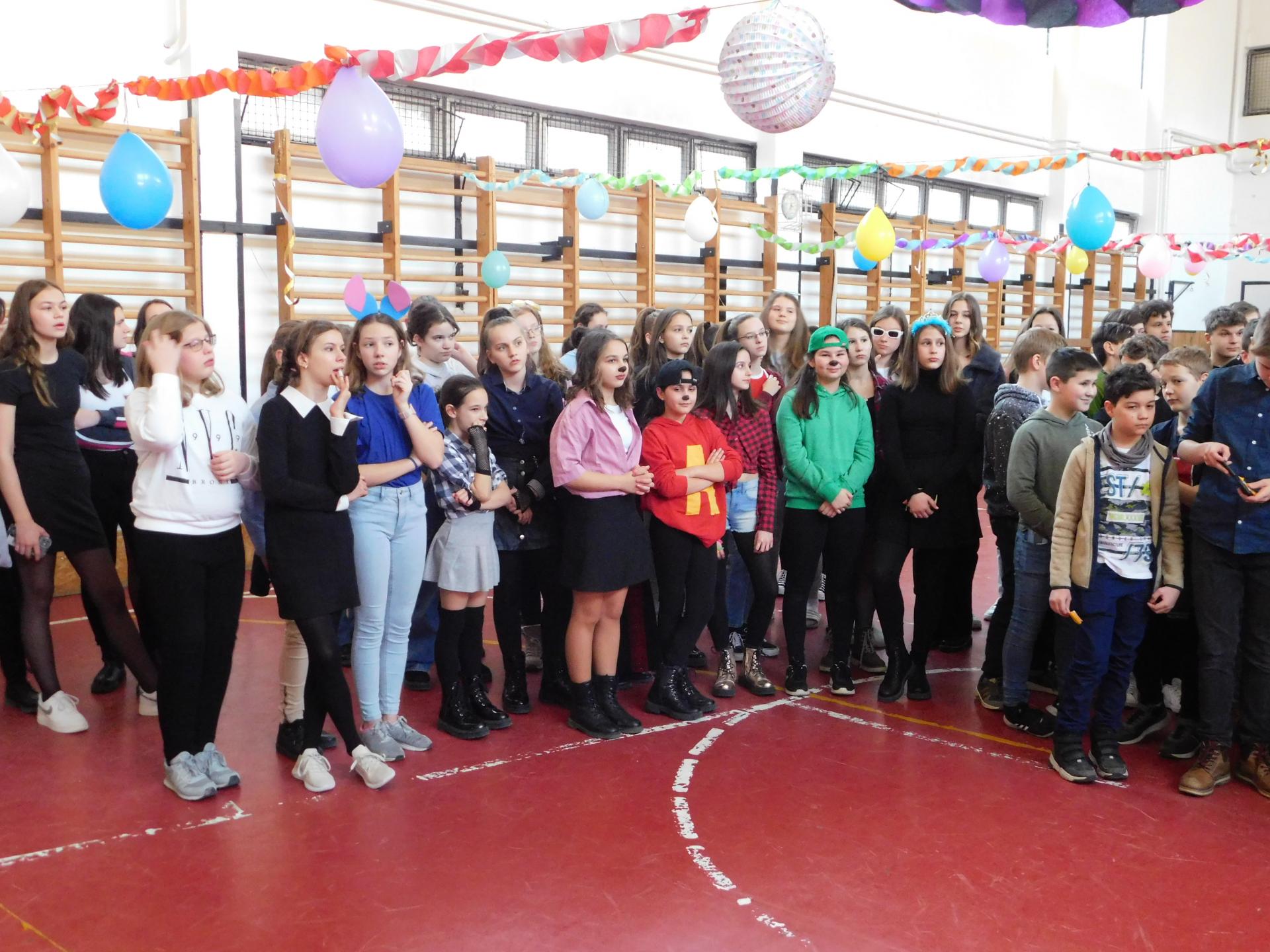 A farsangi bálkirály ebben az évben Láng Zsombor (8.b), a bálkirálynő Gémesi Vanda (8.b) lett. A farsangi bált tombolahúzás zárta.