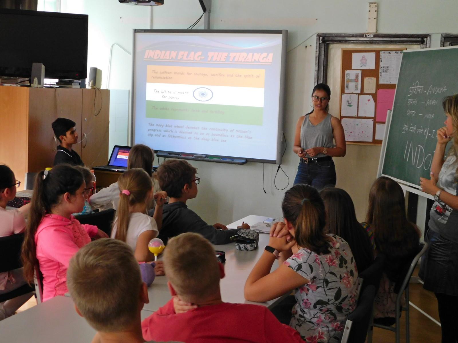 A diákok angol nyelven mutatták be Indiát több tanulócsoportunknak. A magyar gyerekek nagyon kíváncsiak voltak, vendégeink rengeteg kérdésükre válaszoltak.