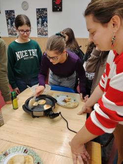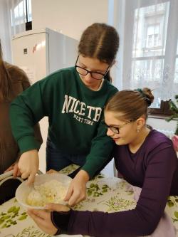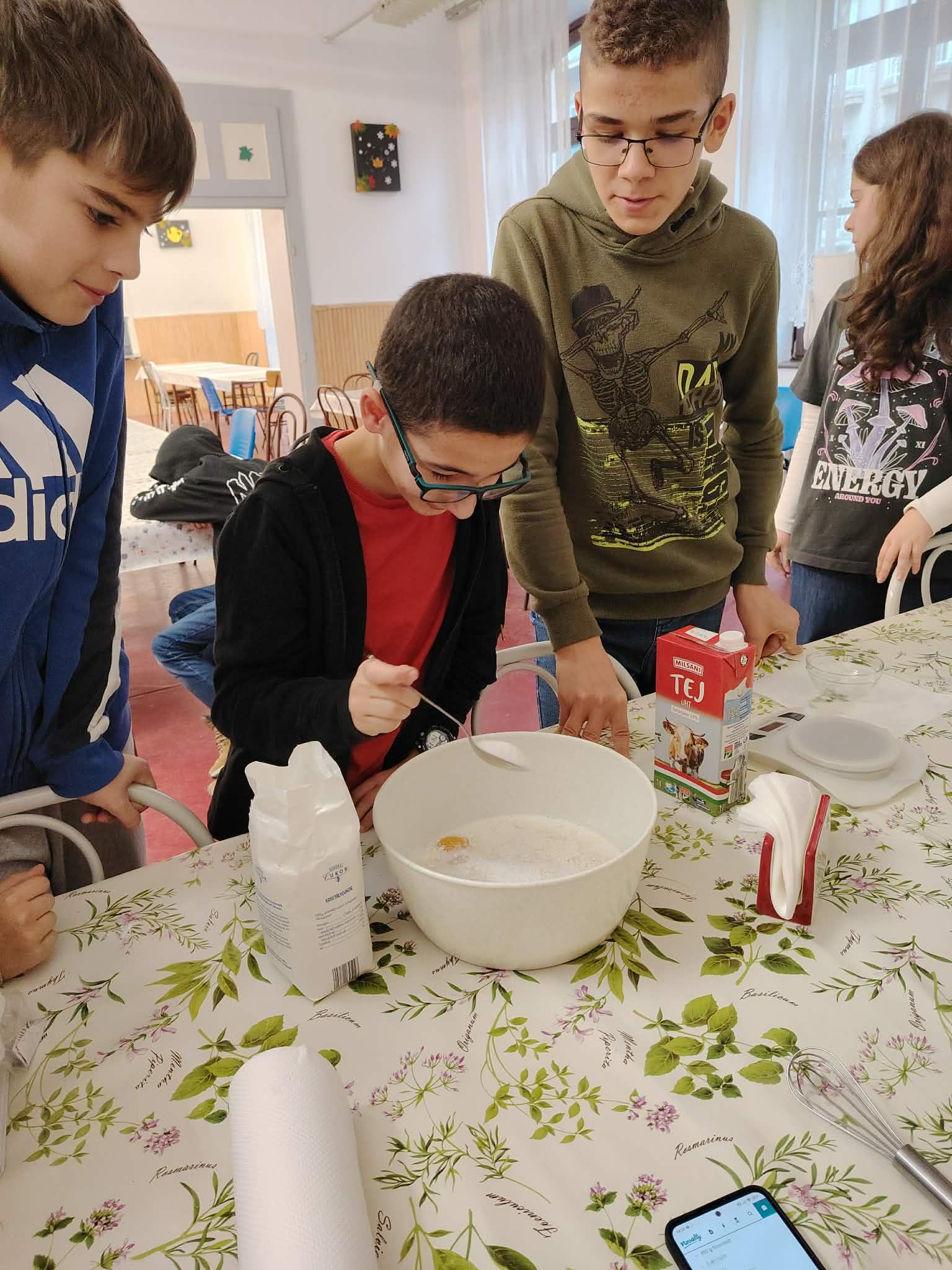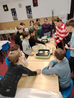 A gyerekek amerikai palacsintát készítettek, saját maguk állították össze az alapanyagokból a palacsintatésztát, és ők is sütötték azt meg. Öröm volt látni, mennyi házias lány és fiú van a csoportban. Mindenki hozzátett valamit a munkafolyamathoz, ezért is lett olyan finom a végeredmény. Az elkészült palacsintákat a közös uzsonna keretében el is fogyasztottuk.