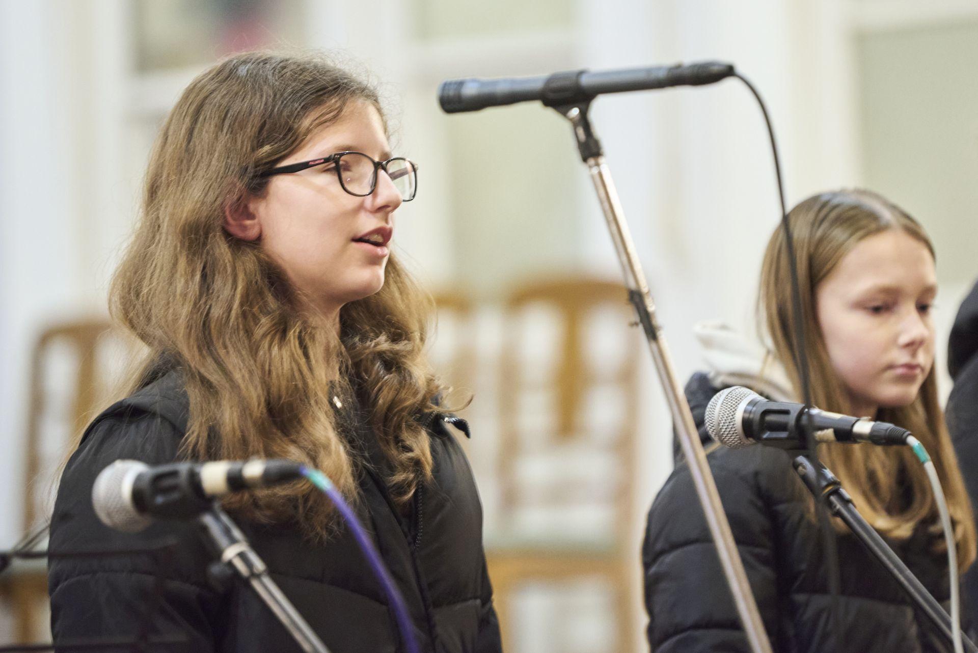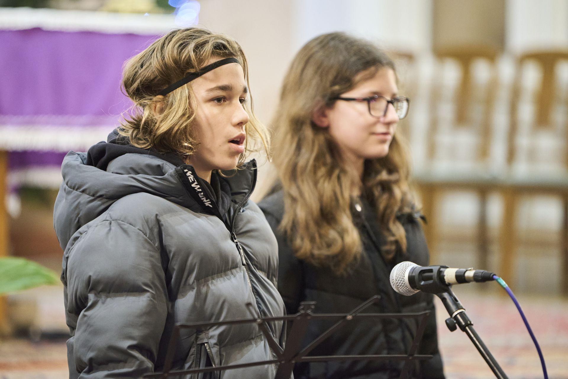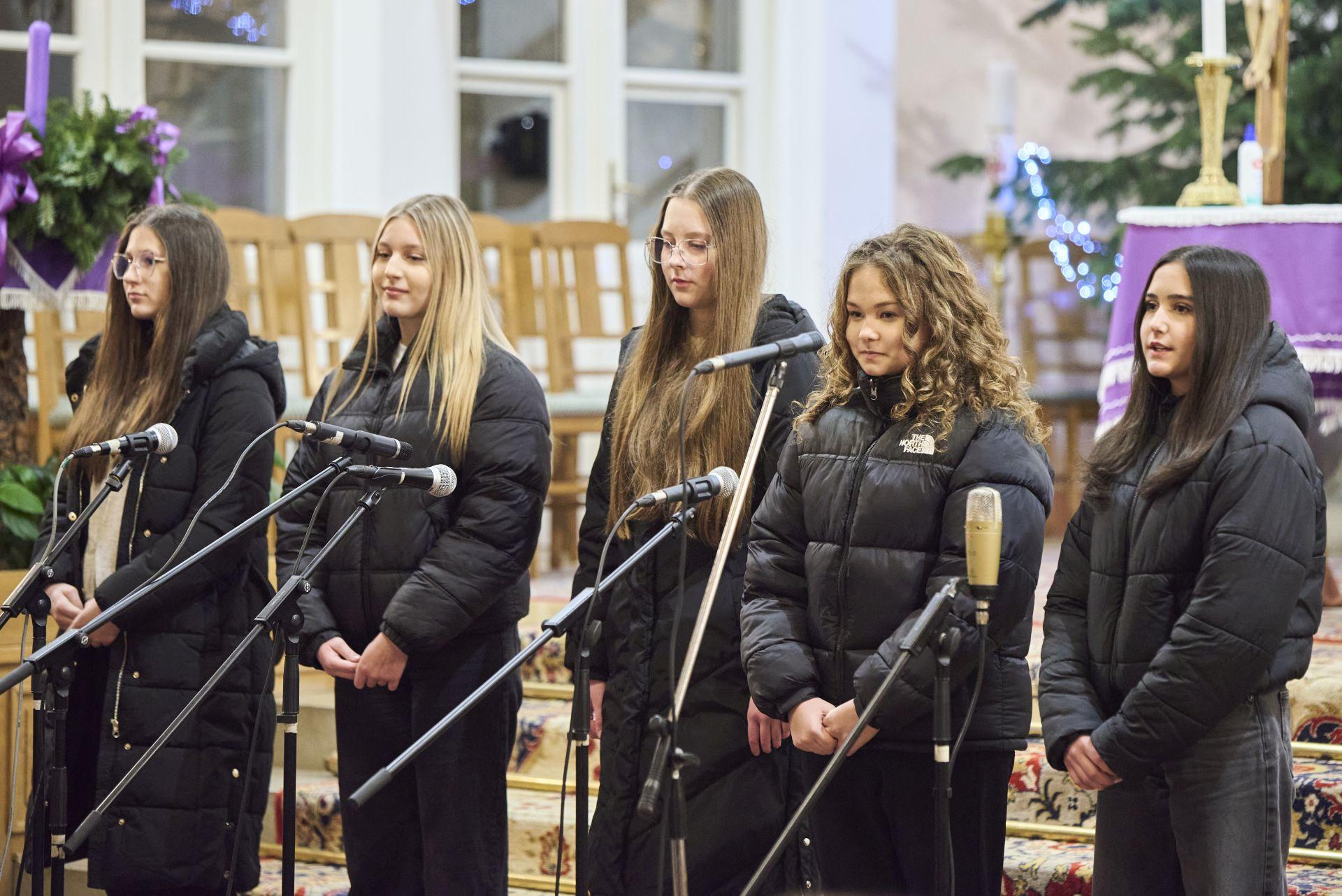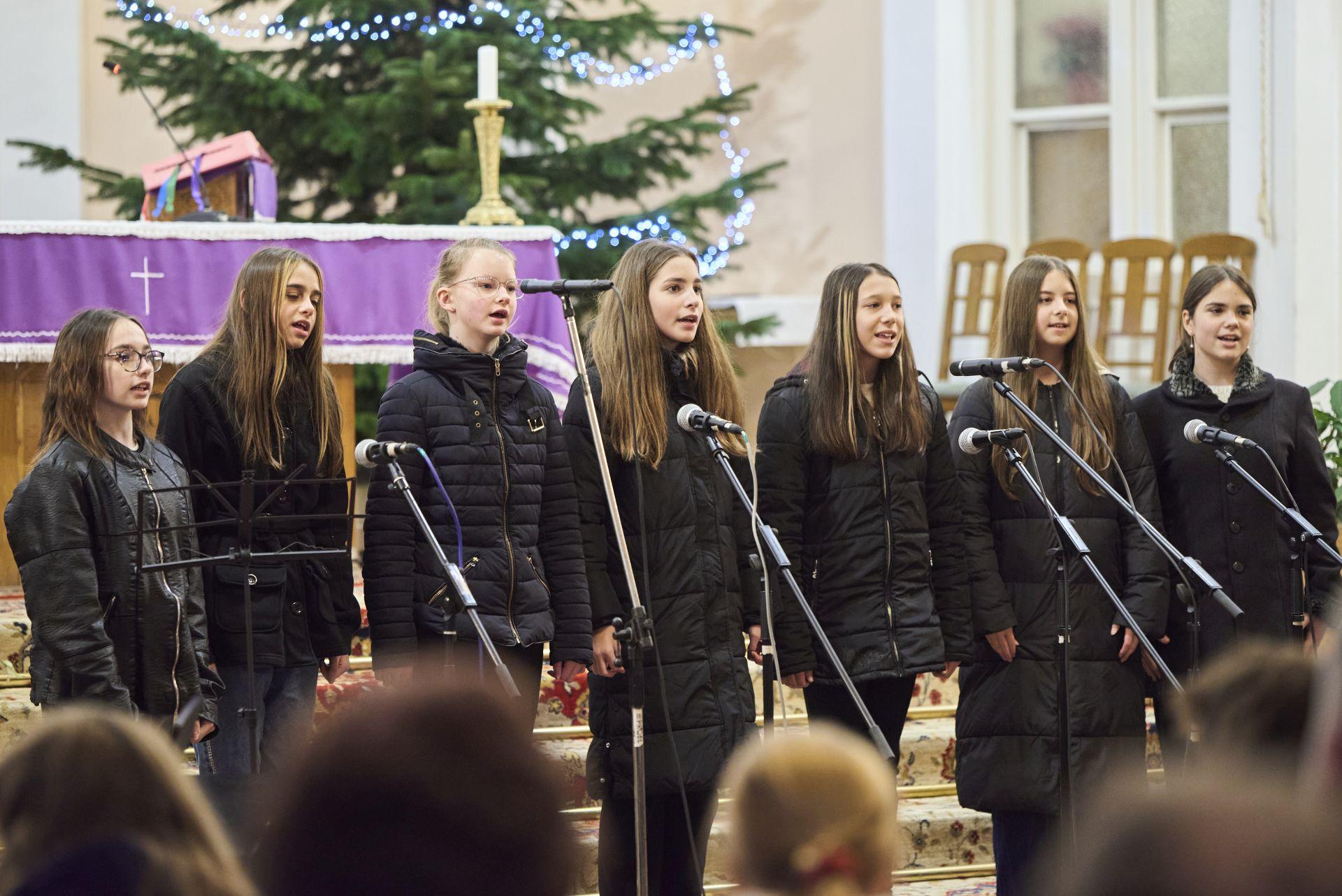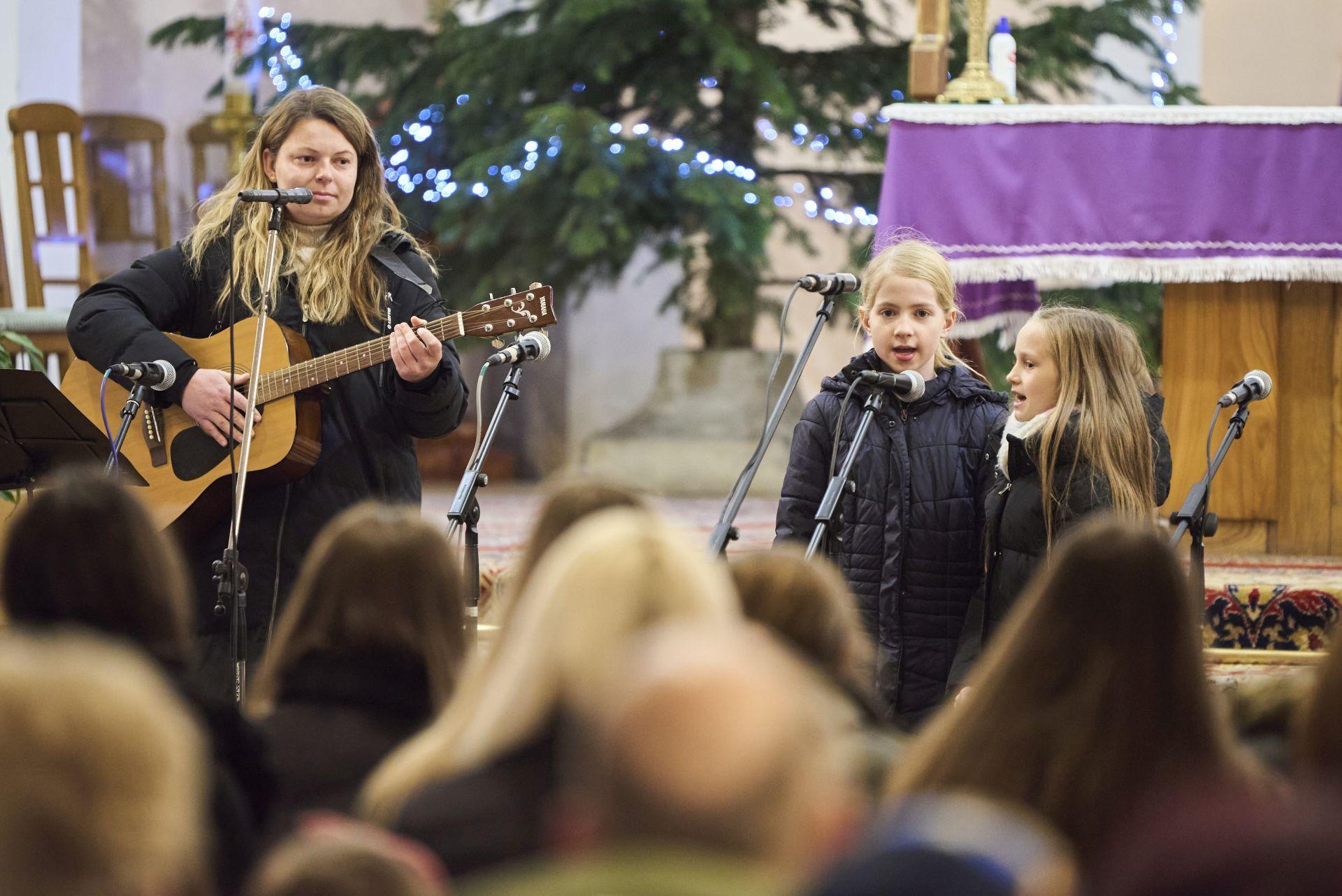 Balázs Boróka és Varga-Olasz Csenge karácsonyi énekeket énekeltek, gitáron kísért: Oravecz-Molnár Rebeka