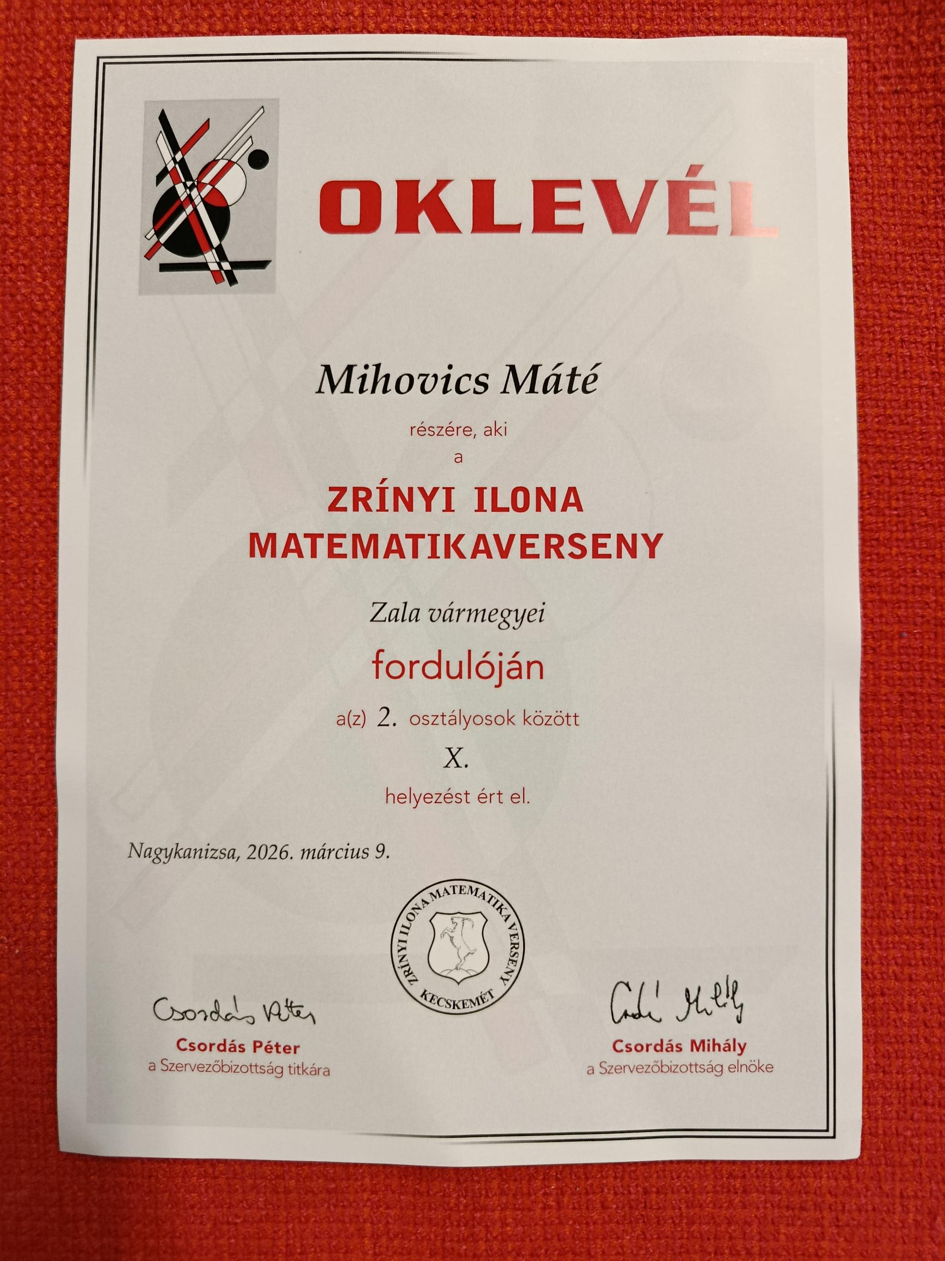 2. évfolyam Mihovics Máté 10. hely