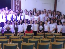 A mi két iskolánk összevont énekkara kimondottan a tavaszra építette fel dalait. Voltak segítőink is: zongorán kísért a Zrínyi Miklós Általános Iskolában tavaly végzett diákja, aki immár gimnazista: Tóth Bence, gitáron kísért Krasznai Bertalan Tanárúr, szólót énekelt a Bolyai János Általános Iskola 6.a osztályos tanulója: Sándor Cintia Virág.