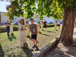 Az ünnepi műsor után a tanulók megkoszorúzták az iskolánk aulájában található emléktáblát, majd virágokat helyeztek el az aradi vértanúk szobrainál az Aradi udvarban.