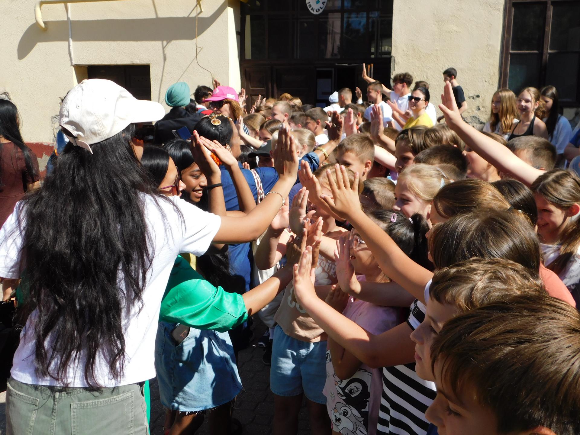 Az iskolalátogatás után az Erzsébet téren megcsodálhattuk táncaikat és különleges, gyönyörű ruháikat. Magyarországot a zalaegerszegi Albatrosz Tánc Sport Egyesület, a nagykanizsai Szan-Dia Fitness Sport Club és a Zrínyi iskola 4. osztályos táncsoportja képviselte. Iskolánk csoportja a bennszülöttes koreográfiáját mutatta be, felkészítőjük Fallerné Márkus Lívia volt.