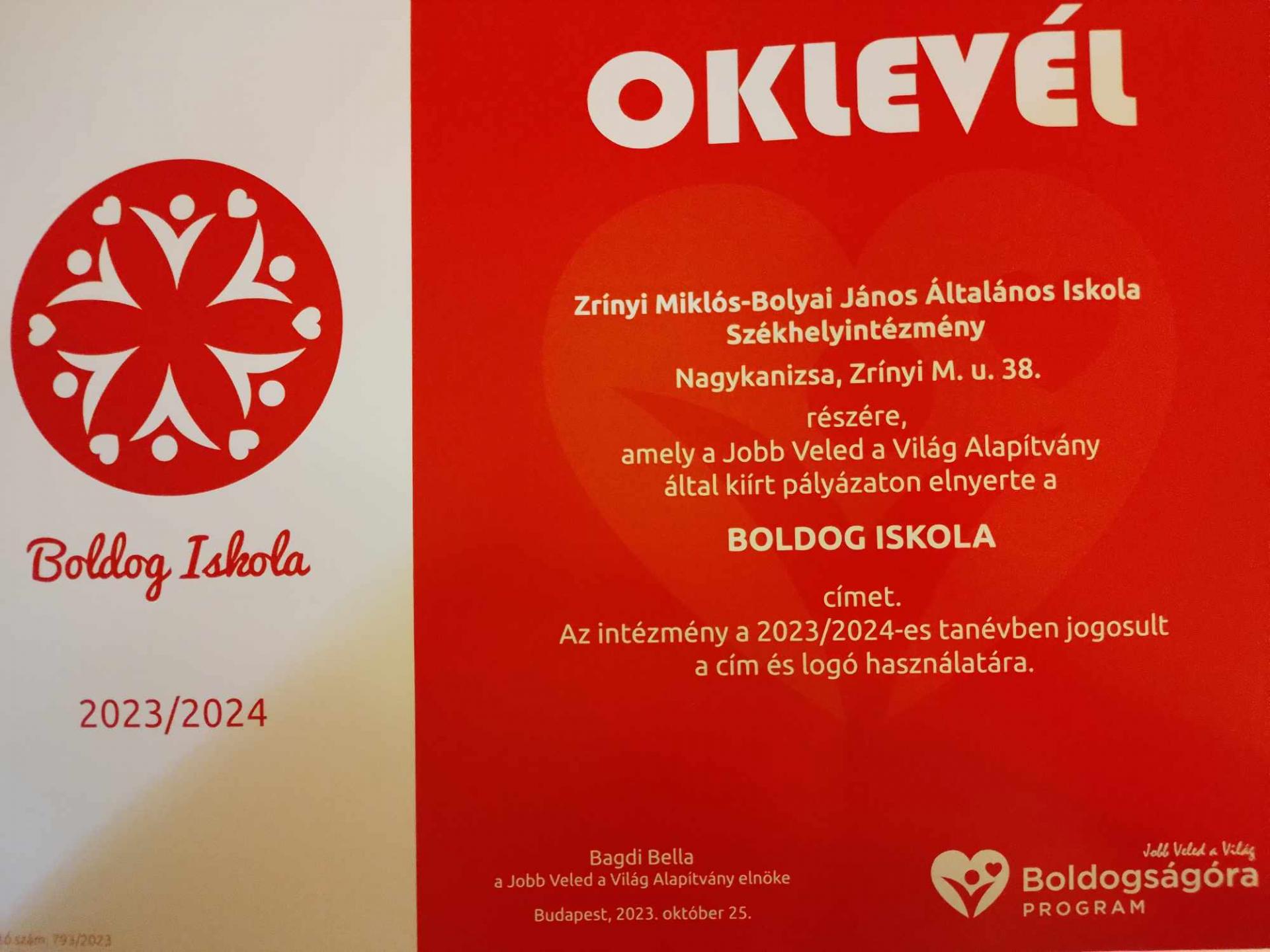 - Ismét átvehettem Budapesten a Boldog Iskola oklevelet egy gyönyörű 10 éves jubileumi ünnepség keretében. A program 10 éve jött létre, 7 éve lehet csatlakozni az iskoláknak és én kezdetektől foglalkozom a Boldogságóra Programmal. 6 éve pedig pályázom is az iskola nevében, folyamatosan dokumentálva a munkánkat. Nagyon sok pluszt ad ez a gyerekeknek is és számomra is, amiből lehet töltekezni, általa jobbá fejlődni.