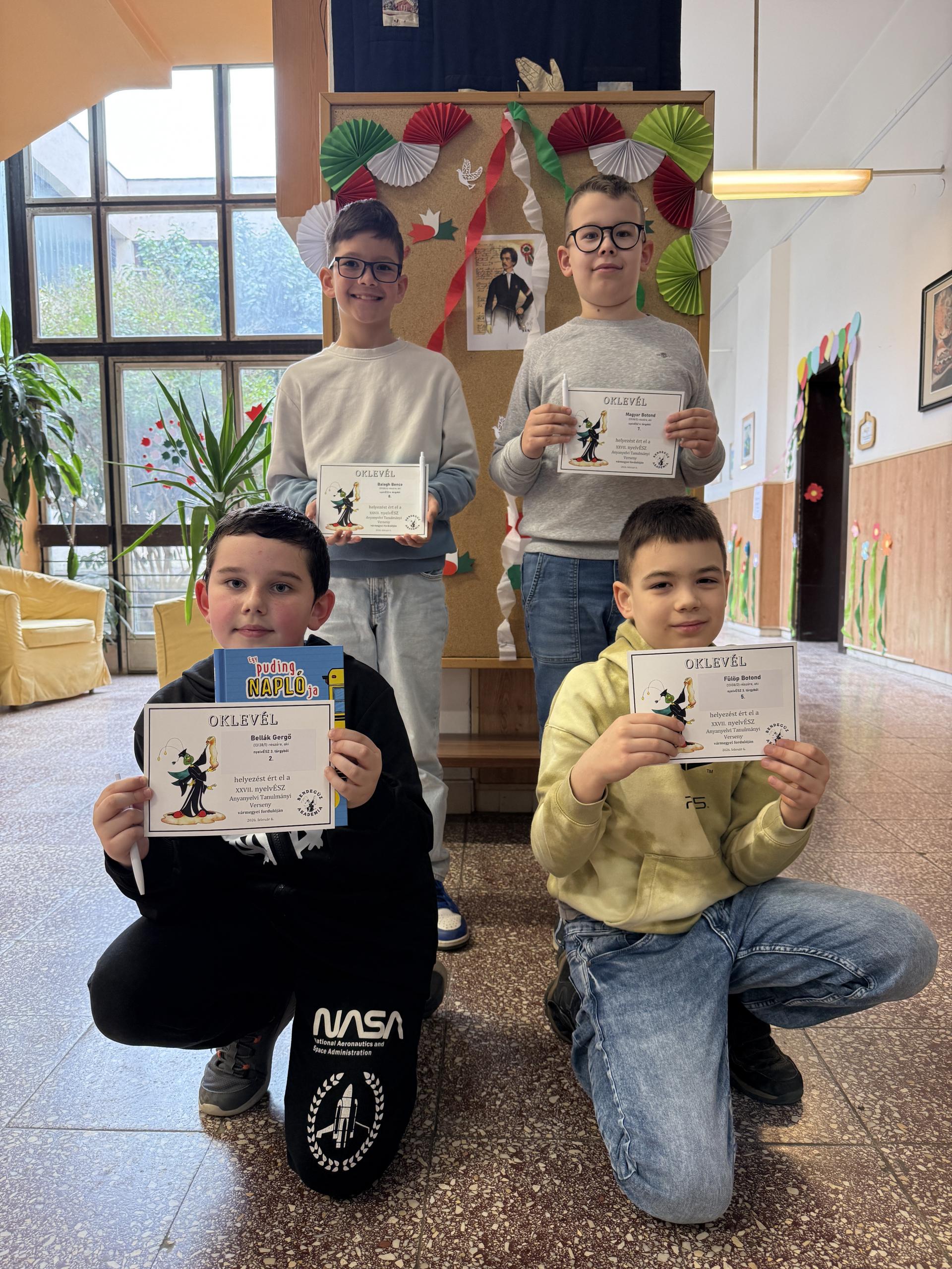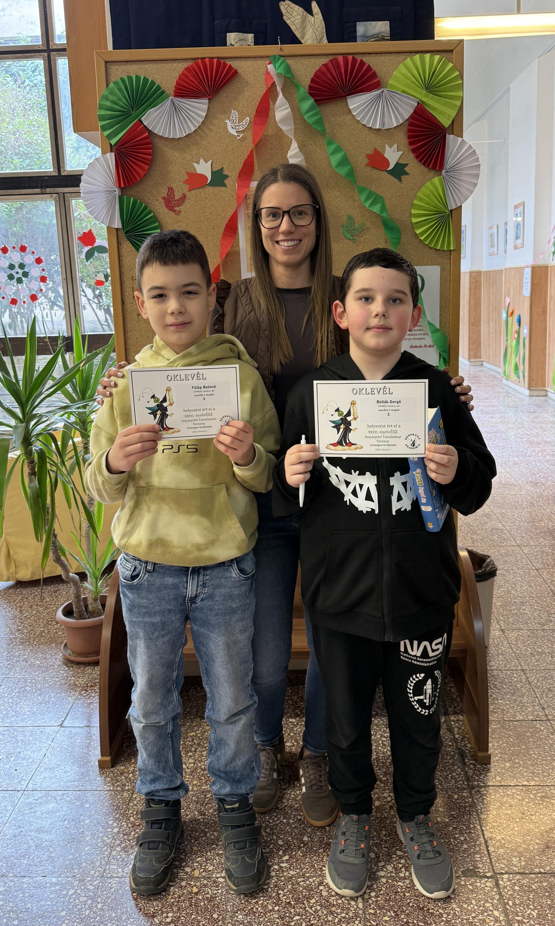 3. évfolyam: Bellák Gergő 2. hely