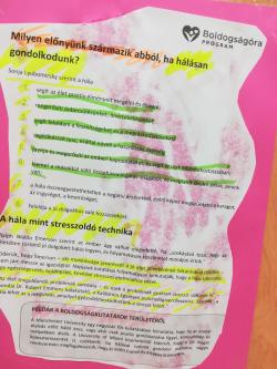A 6.c osztály idén is folytatja a Boldogságórákat osztályfőnöki órákon. Ebben a hónapban a HÁLA a témájuk.