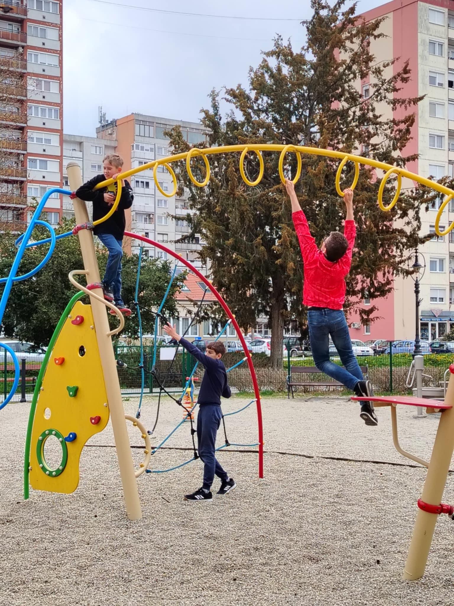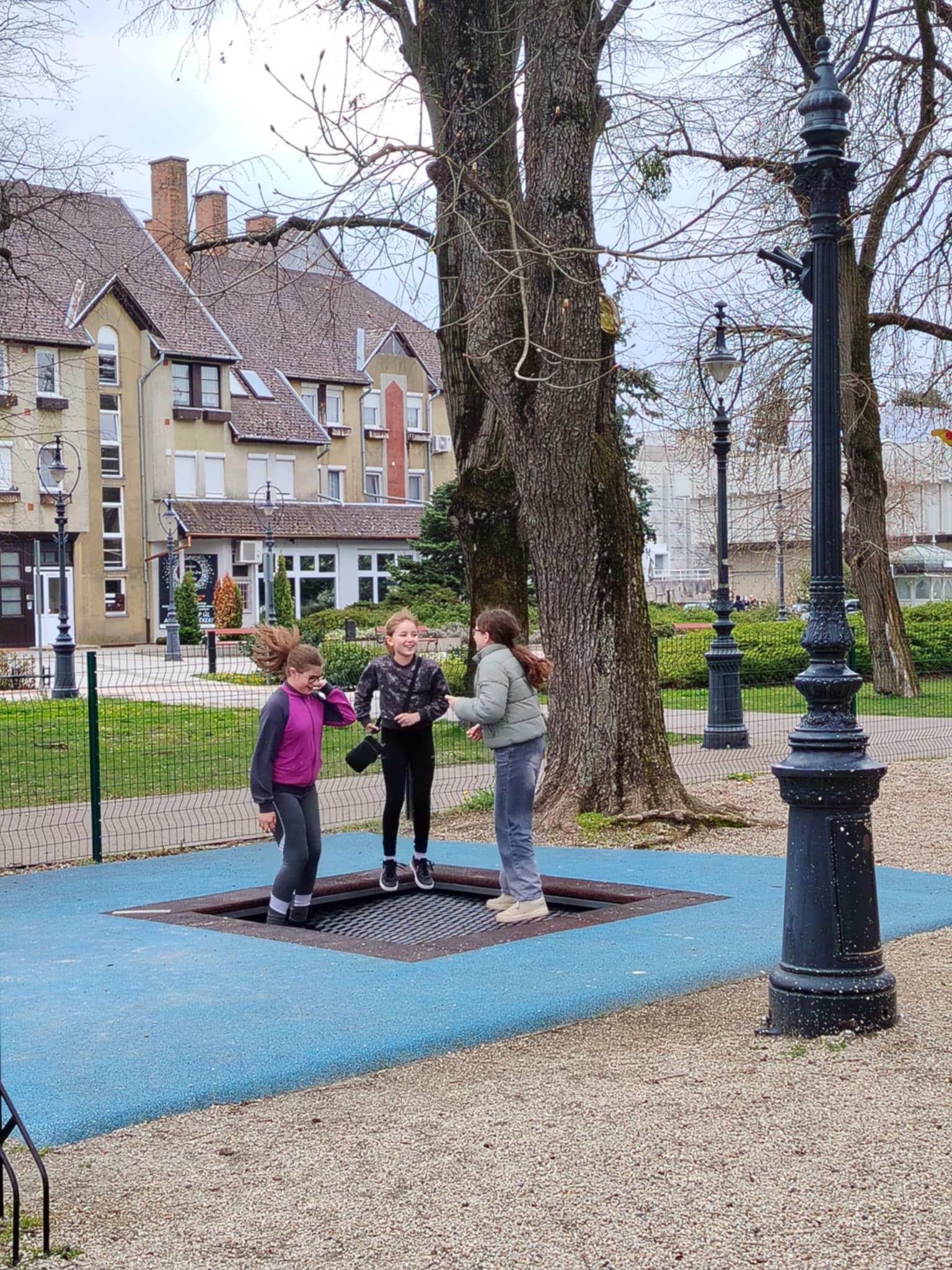 A szeszélyes áprilisi időjárás ellenére a tanulók önfeledten szórakoztak, kihasználva, hogy övék volt az egész játszótér.