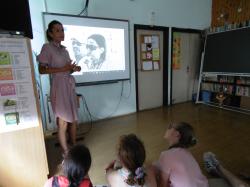 A futóversenyeken szerzett élményeiről mesélt és fényképeket mutatott a gyerekeknek, akik lelkesen és kíváncsian hallgatták, és rengeteget kérdeztek. Arról is mesélt, hogy gyerekkorában nem szeretett futni, és arra bátorította a tanulókat, hogy találják meg a nekik való mozgásformát, ami örömet jelent számukra.